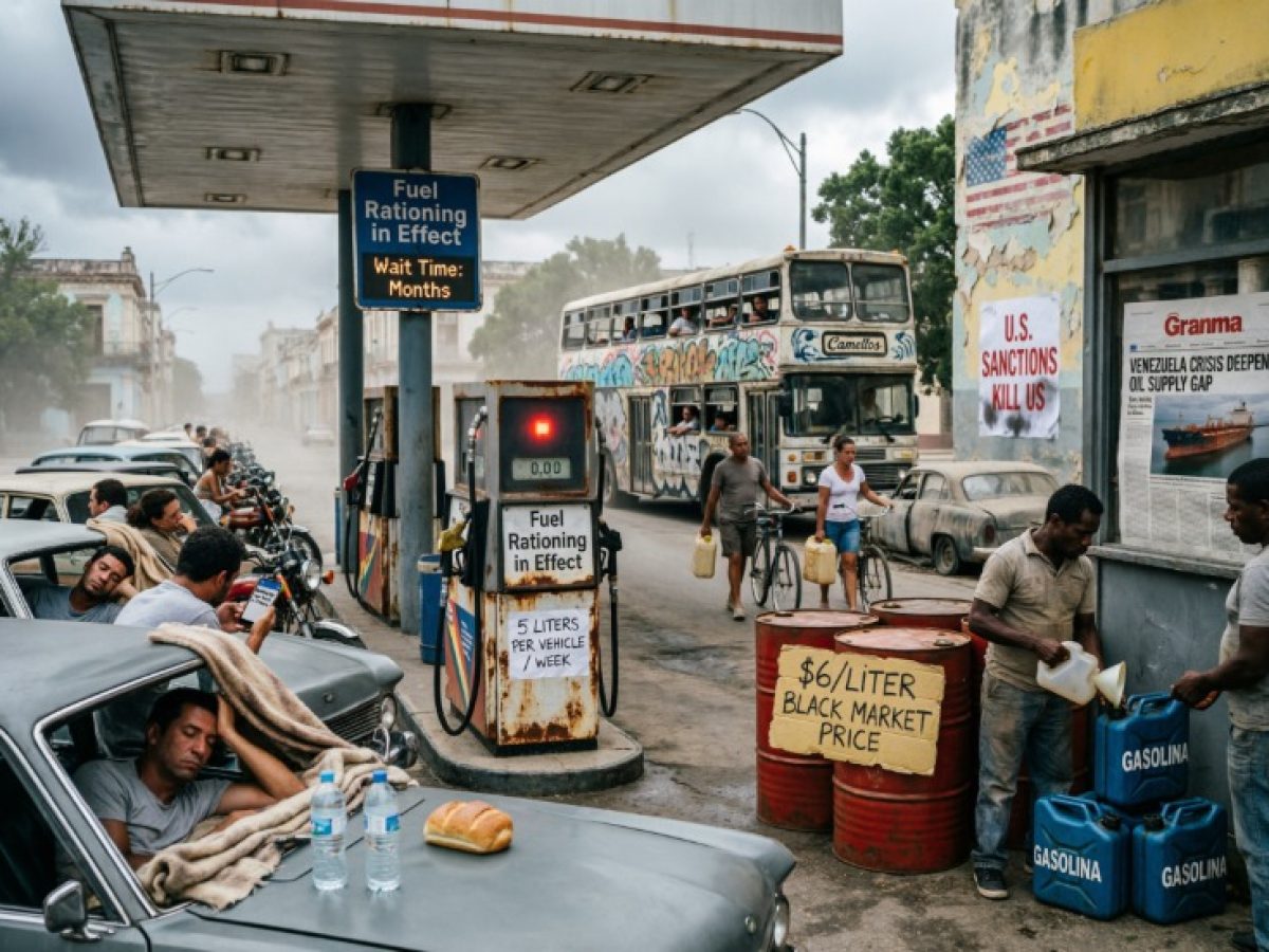 Η ΚούβαΗ διανομή καυσίμων γίνεται πλέον αυστηρά μέσω μιας ειδικής κρατικής εφαρμογήςΑτελείωτες ουρές και μαύρη αγοράΑκόμα και όταν έρθει η σειρά ενός οδηγού, το ανώτατο επιτρεπόμενο όριοΟικονομικά δεδομένα καυσίμων στην ΚούβαΟι λόγοι της κρίσηςΣε απάντηση της πρωτοφανούς ενεργειακής κρίσηςΟι επιπτώσεις στον τουρισμό και την οικονομίαΟι τουρίστες που προγραμματίζουν ταξίδι στην ΚούβαΕναλλακτικοί τρόποι μετακίνησης στην καθημερινότηταΗ αναζήτηση νέων ενεργειακών λύσεων