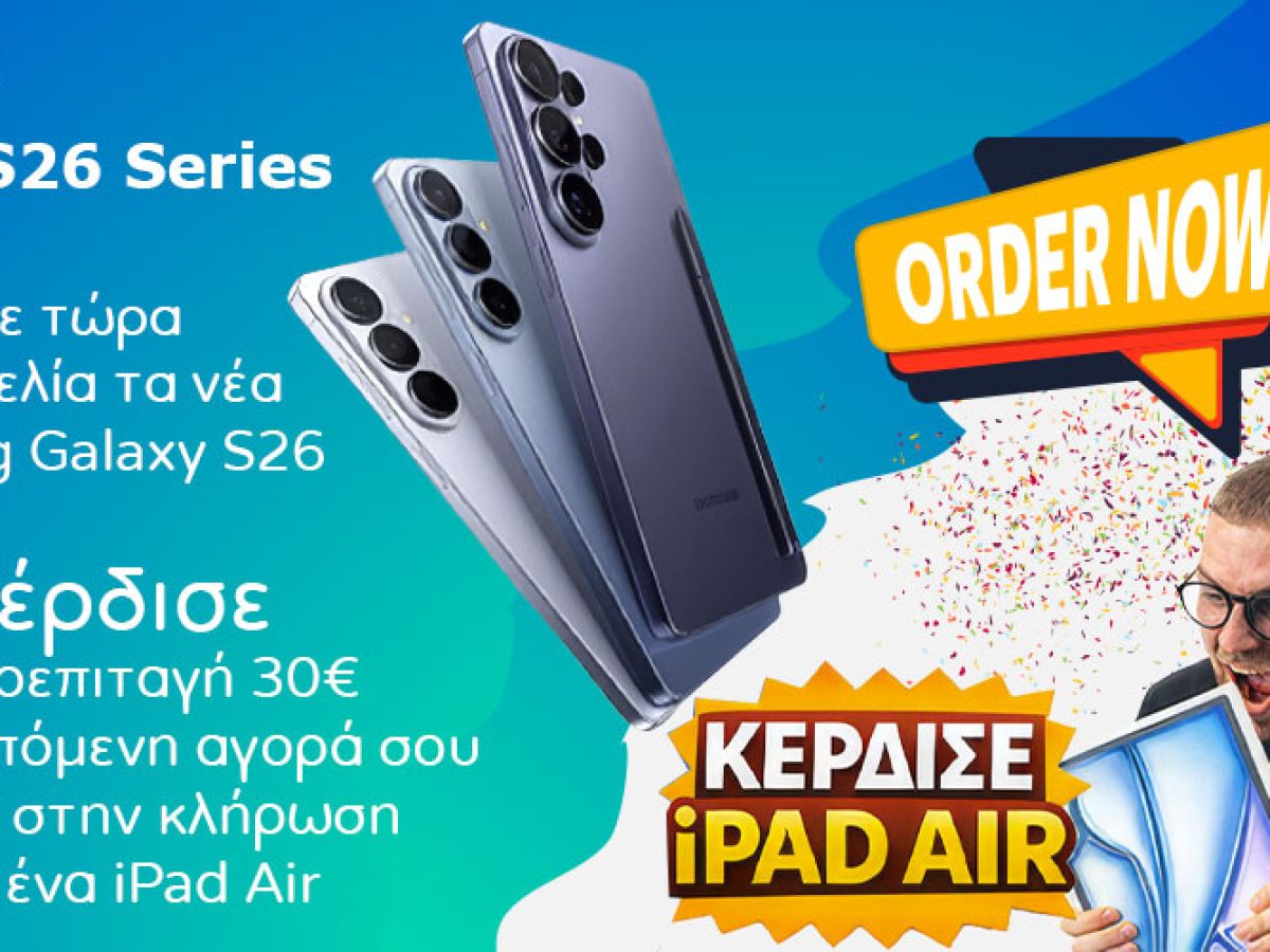 Το Matshop.gr προσφέρει τη σπουδαία σειρά Galaxy S26 με τιμές που ξεκινούν από τα 1.027.88 € (όταν η αρχική τιμή είναι 1.249,99 €), ενώ ταυτόχρονα κερδίζεις μια δωροεπιταγή 30 € και μπαίνεις σε κλήρωση για να κερδίσεις ένα iPad Air αξίας 900€. Δεν μπορούμε να σκεφτούμε καλύτερη προσφορά από αυτήν.