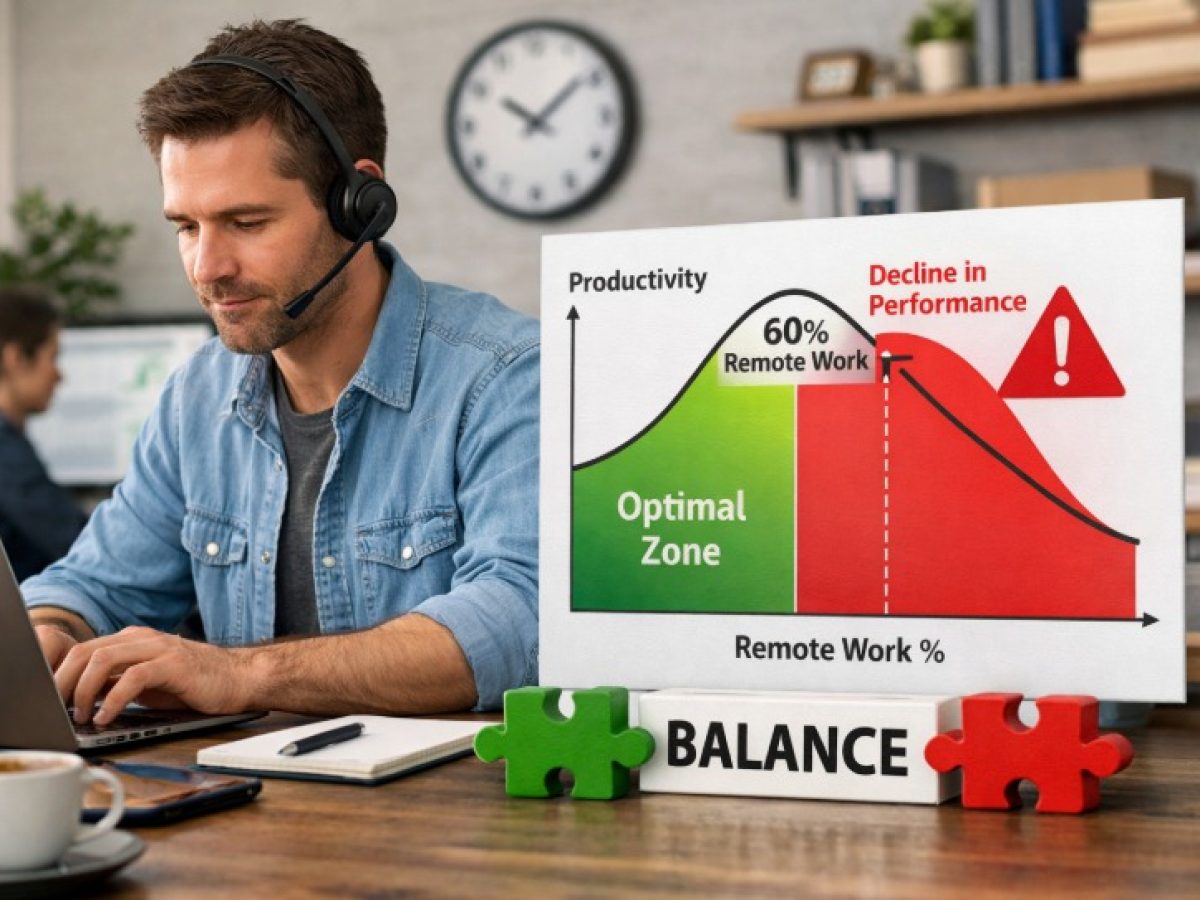 Πίνακας περιεχομένωνΜελέτη δείχνει από πότε η παραγωγικότητά μας επηρεάζεται από την υπερβολική τηλεργασίαΗ τηλεργασία παραμένει καυτό θέμα στην αγορά εργασίαςΗ «απάτη ωραρίου» αφορά περιπτώσεις όπου δηλώνεται εργάσιμος χρόνος χωρίς αντίστοιχη εργασία. Τα δεδομένα δείχνουν ότι δεν είναι το κυρίαρχο μοτίβο στην τηλεργασία.Γιατί αυξάνεται η παραγωγικότητα στο HomeofficeΠώς μετρήθηκε η παραγωγικότηταΤο «σημείο καμπής» της παραγωγικότηταςΠου βρέθηκε το σημείο καμπής στη συγκεκριμένη έρευναΗ υπερβολική τηλεργασία μπορεί να αυξήσει τον χρόνο συντονισμού (μηνύματα, διευκρινίσεις, επαναλήψεις), ειδικά σε εργασίες που απαιτούν συνεργασία.Ένας κρίσιμος περιορισμός: το 60% δεν είναι «μαγικός αριθμός» για όλους